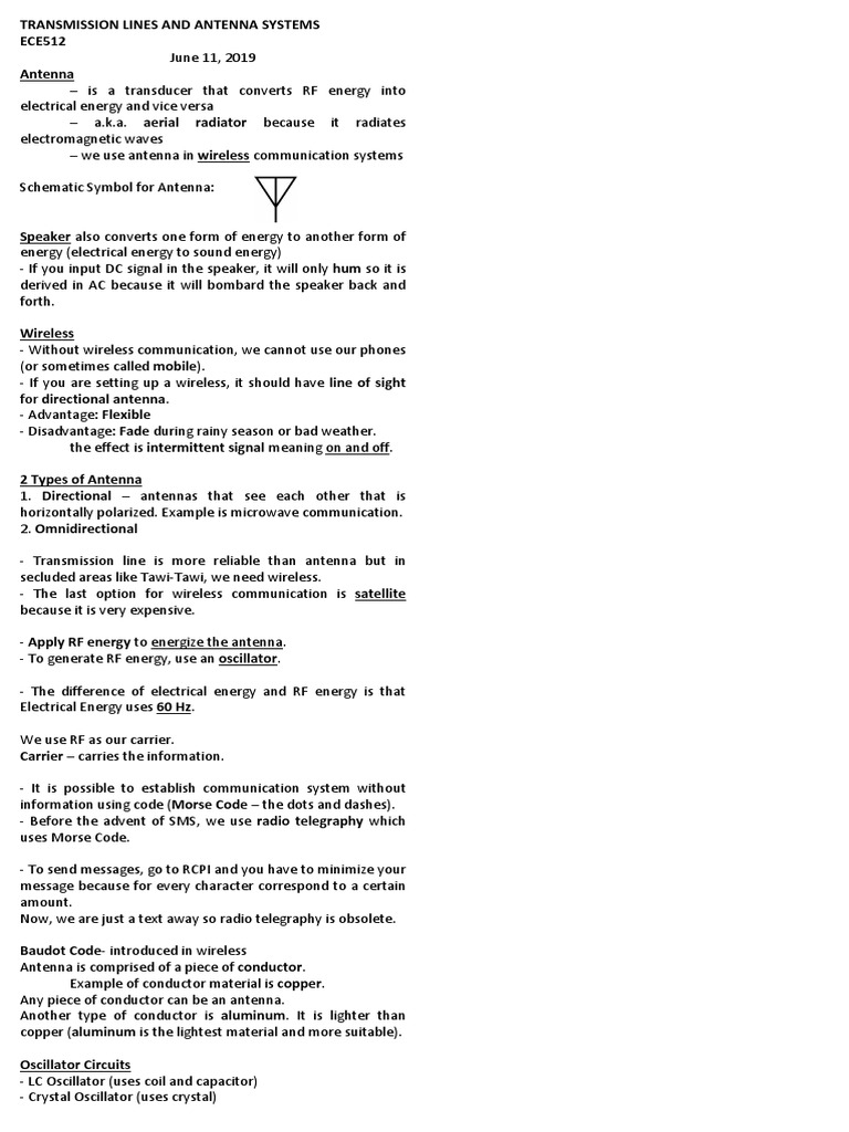 Transmission Lines and Antenna Systems